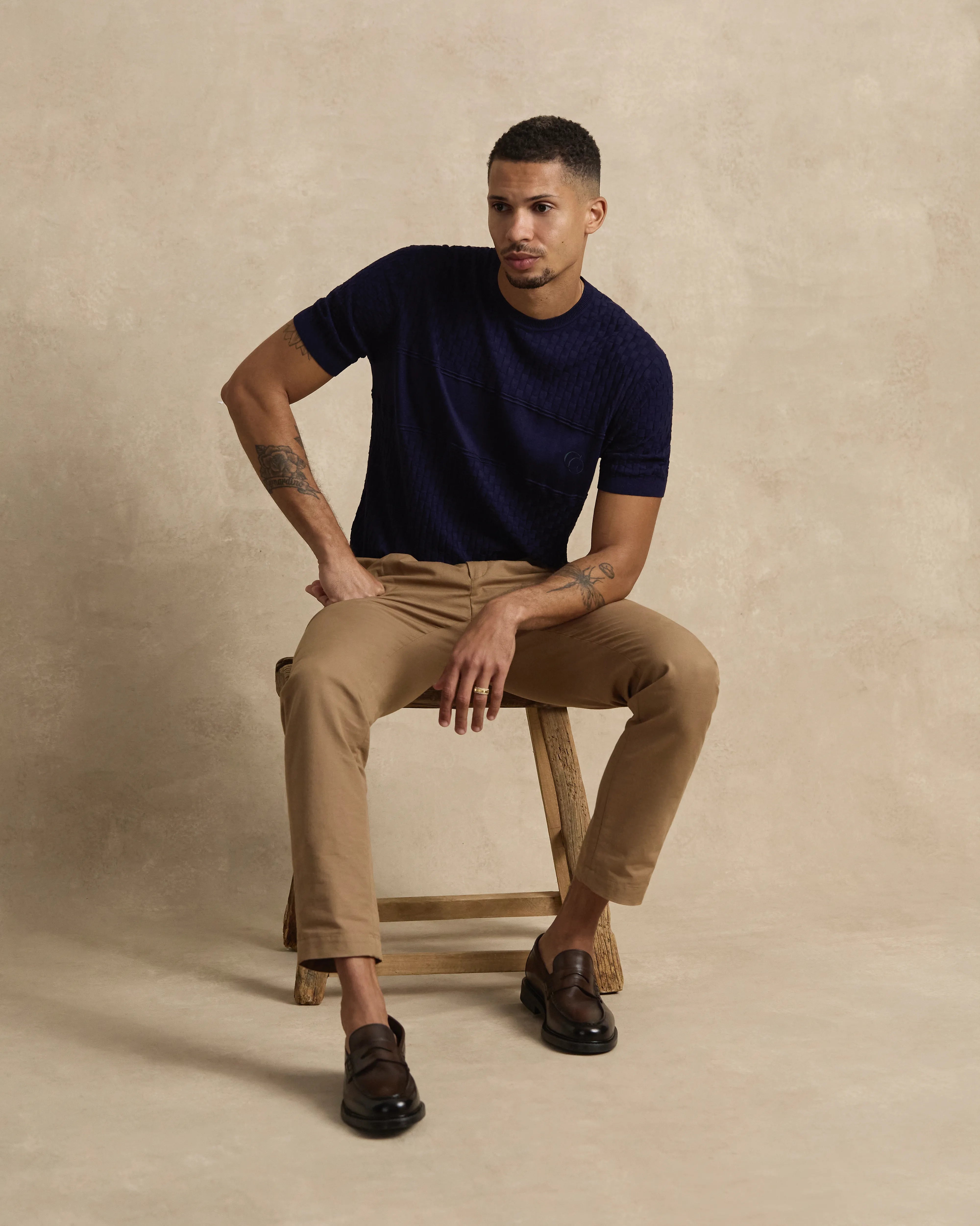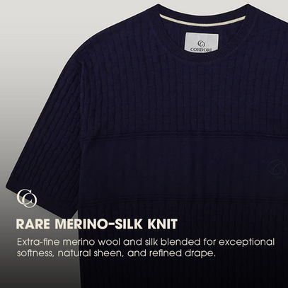 A lightweight knitted tee crafted from an extra-fine merino wool and silk blend. Soft,