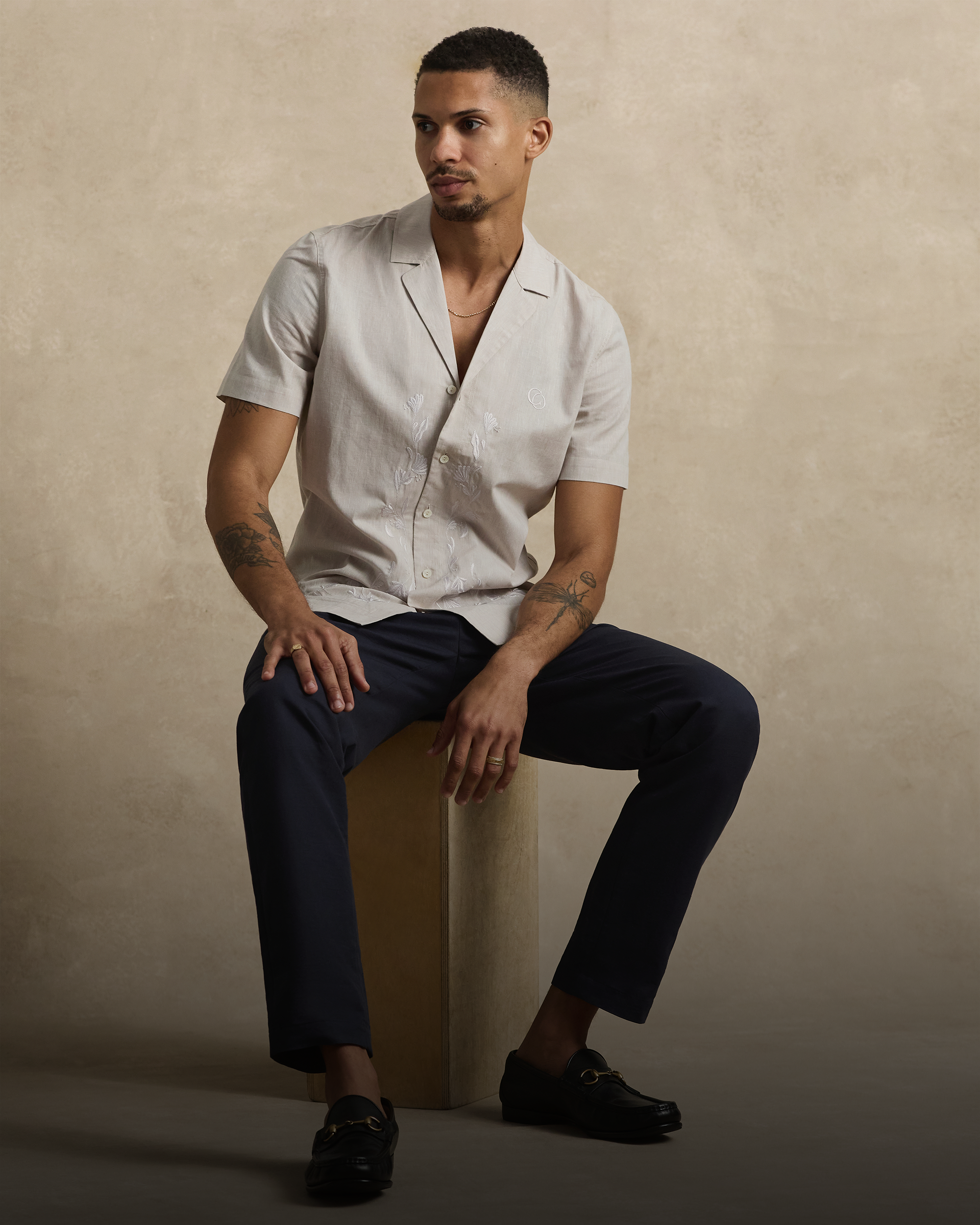 - Cordori Men’s Ember Beige Embroidered Cuban Shirt Cotton Linen Slim Fit $219.00 /BeigeSky BlueAvailable in 2 colors