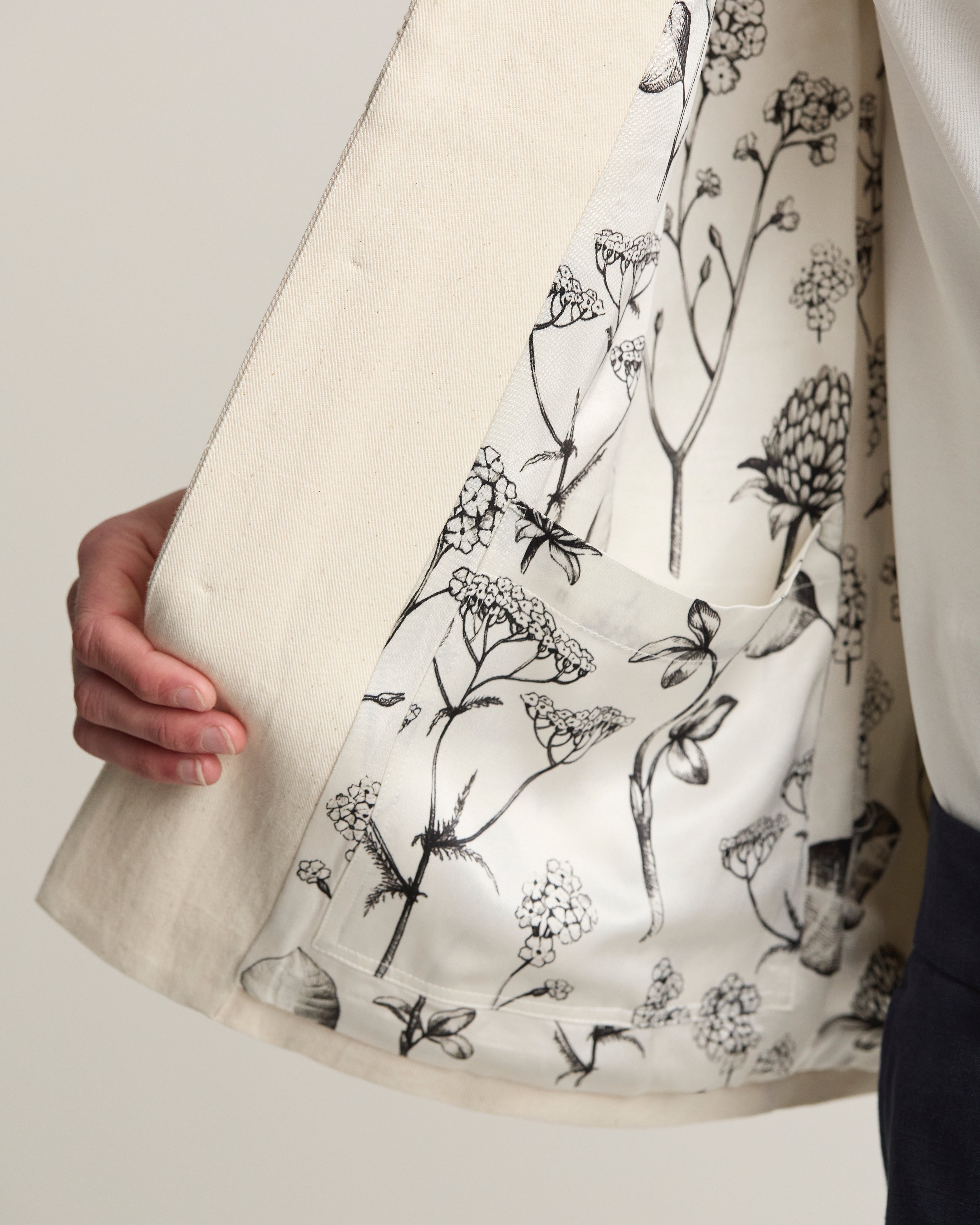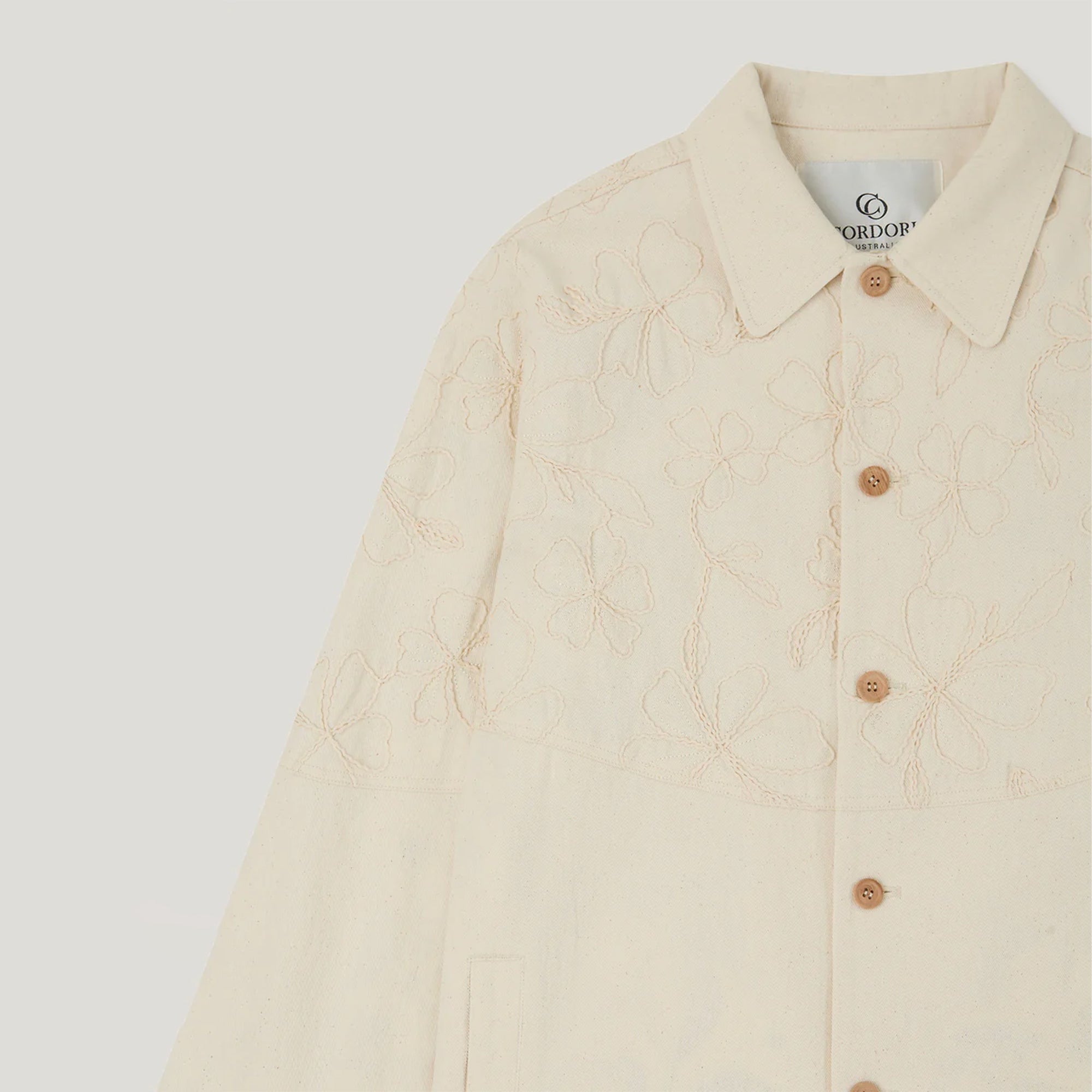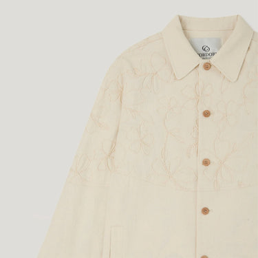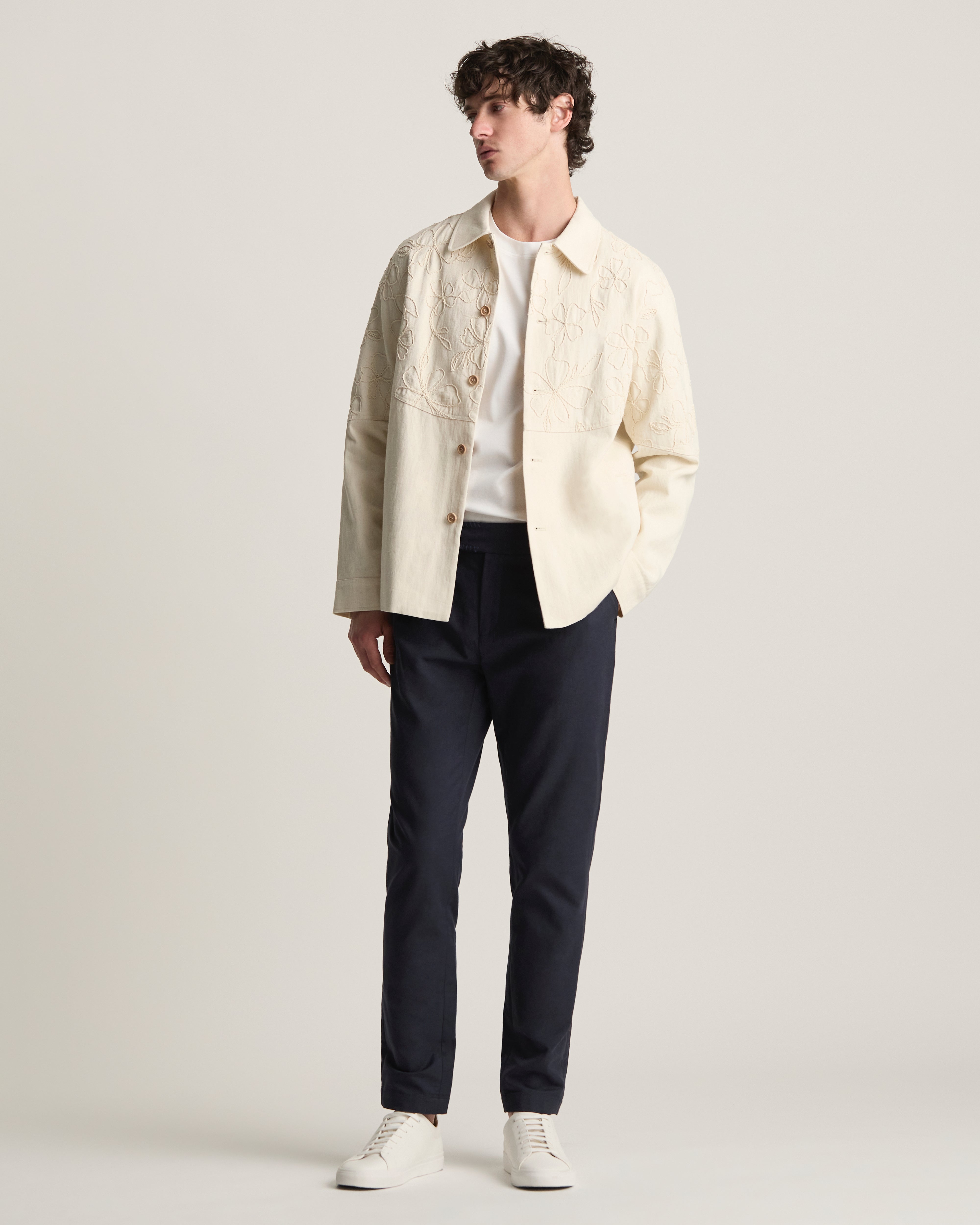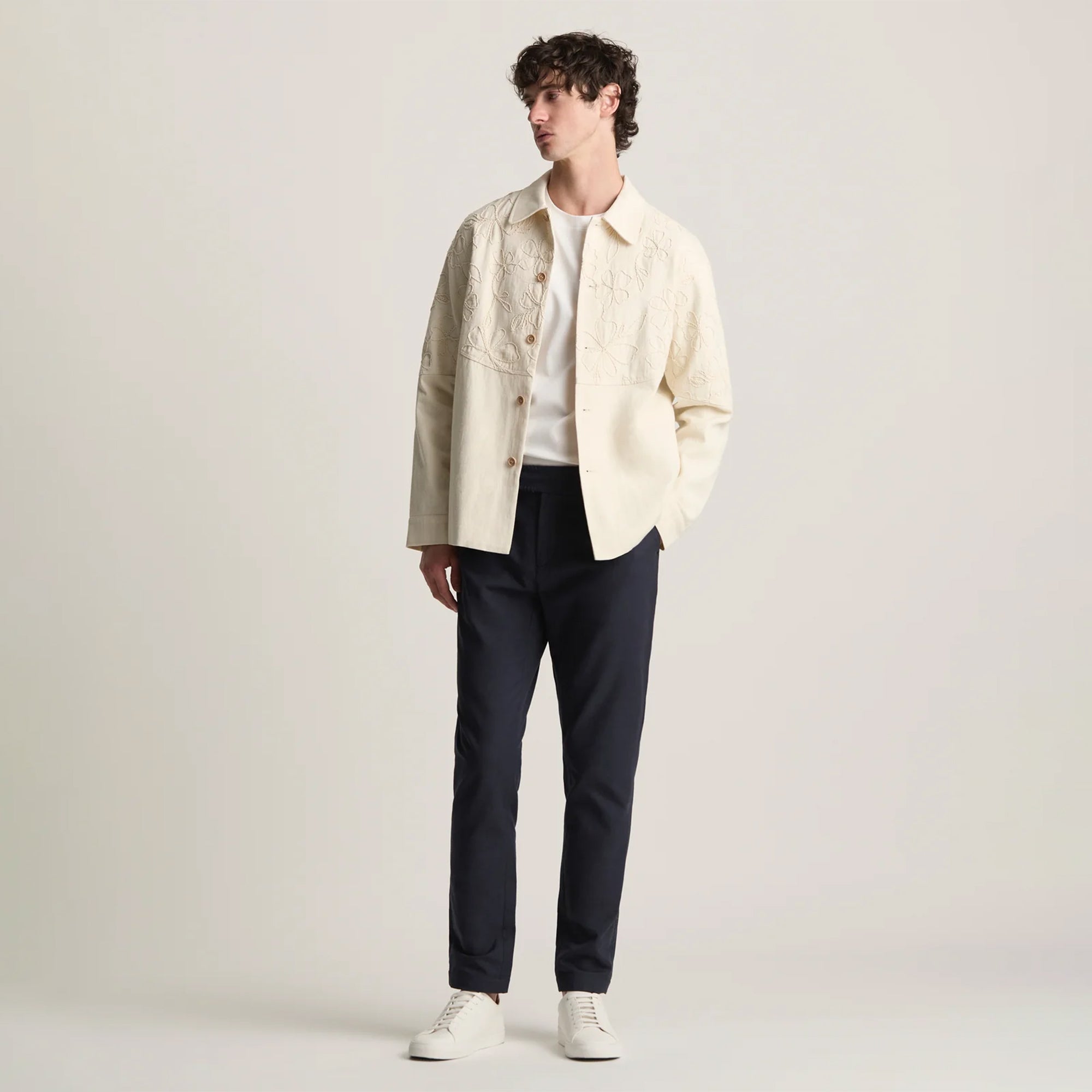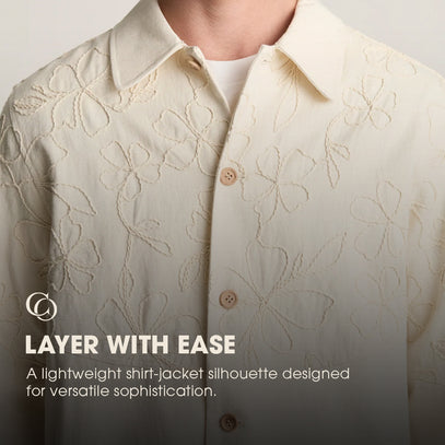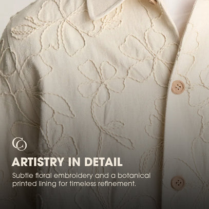 AMARA is Cordori’s refined take on the luxury men’s embroidered shirt jacket, blending soft tailoring with artisanal detailing. Crafted from a breathable Pima‑linen blend, it features delicate floral embroidery and a botanical‑printed inner lining. Lightweight yet structured, AMARA is designed for effortless layering, offering versatility across seasons while embodying timeless craftsmanship.