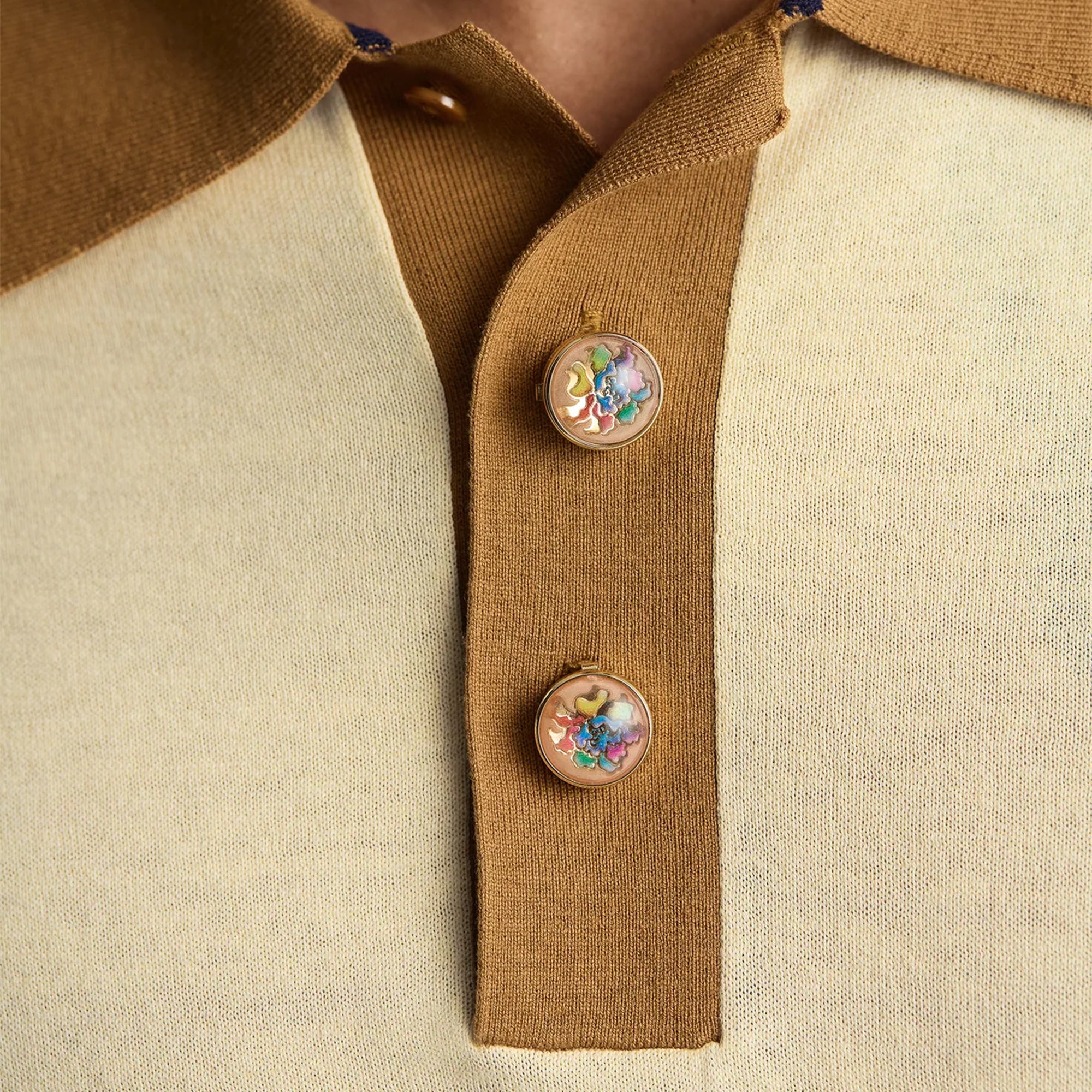 Cordori’s Crest Collection introduces artisanal shirt button covers, crafted to elevate Ember’s design by sitting elegantly on the top button. Made from premium brass copper with a hand‑applied enamel finish, they add a distinctive detail that transitions Ember from daywear to a refined evening look.