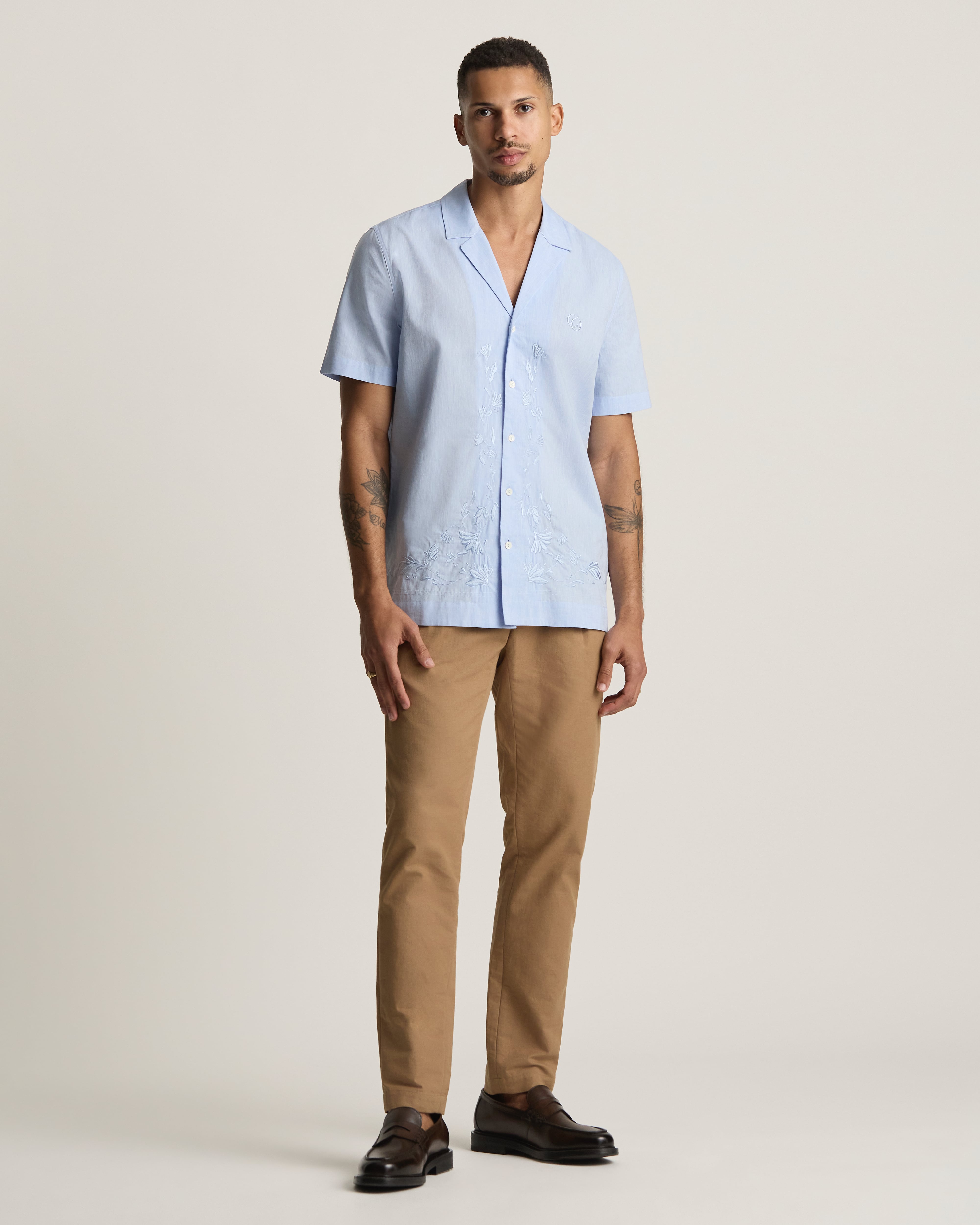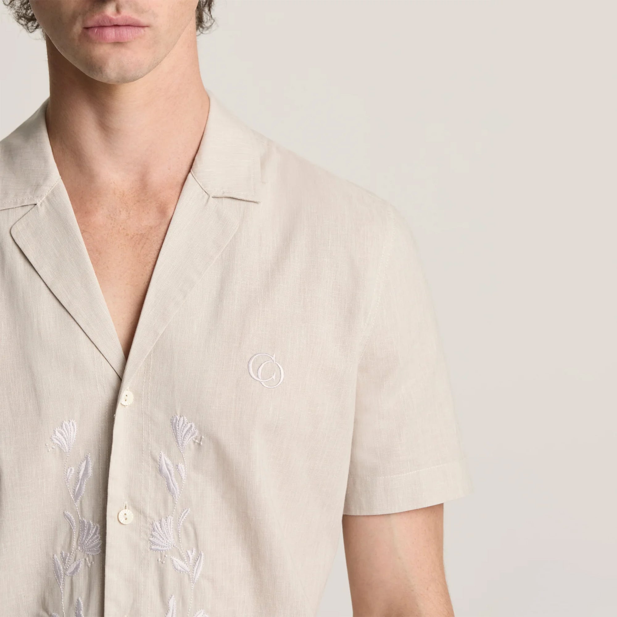 Cordori Men’s Ember Embroidered Cuban Shirt Cotton Linen Slim Fit