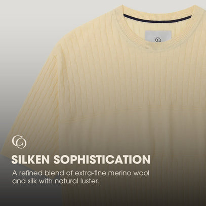 Cordori Men’s Lumen Merino Silk Knitted Cream T-shirt Regular Fit