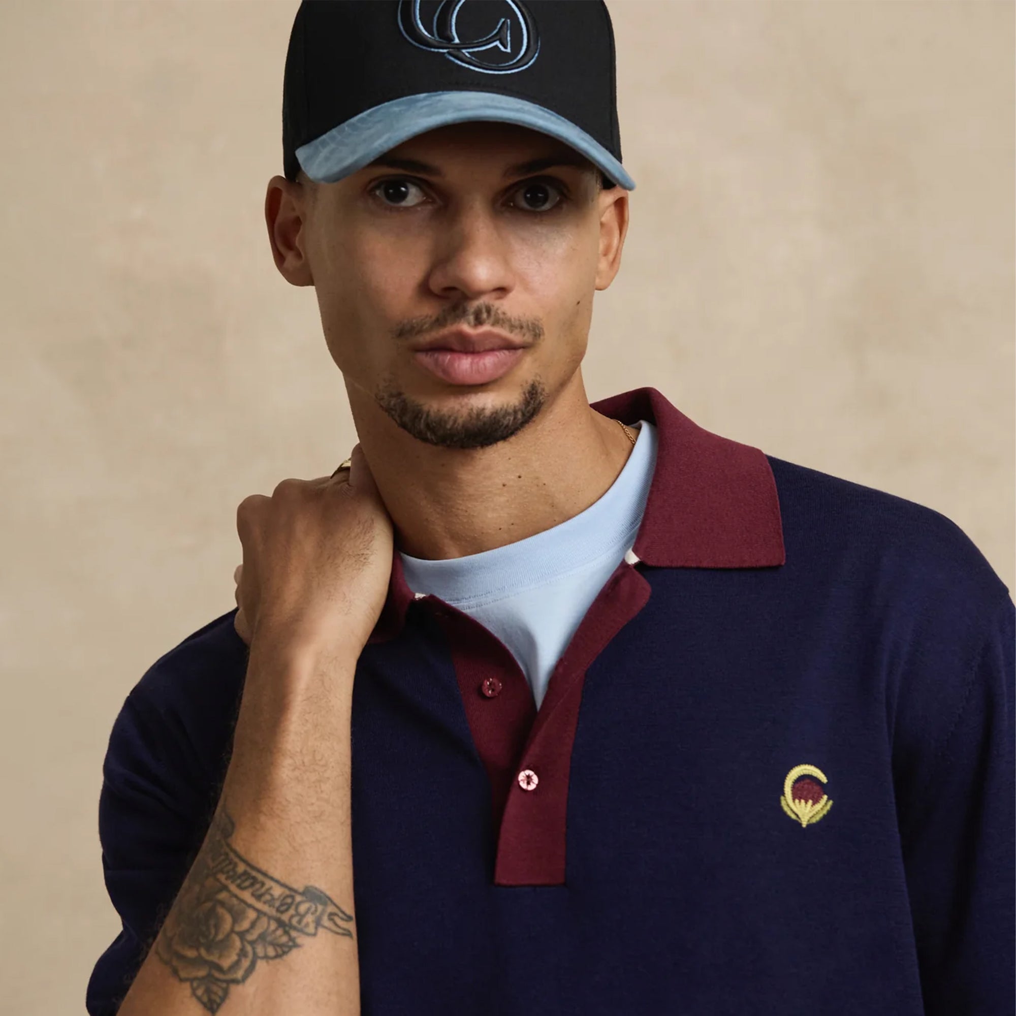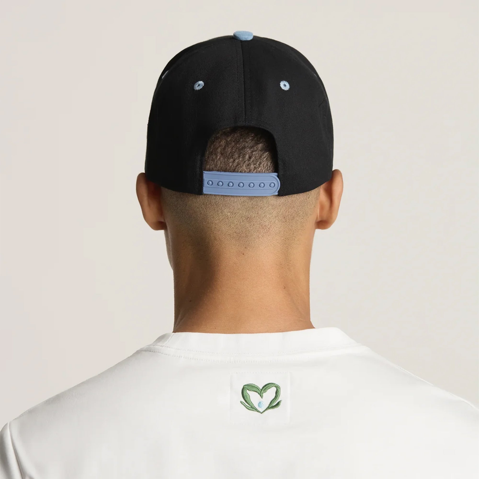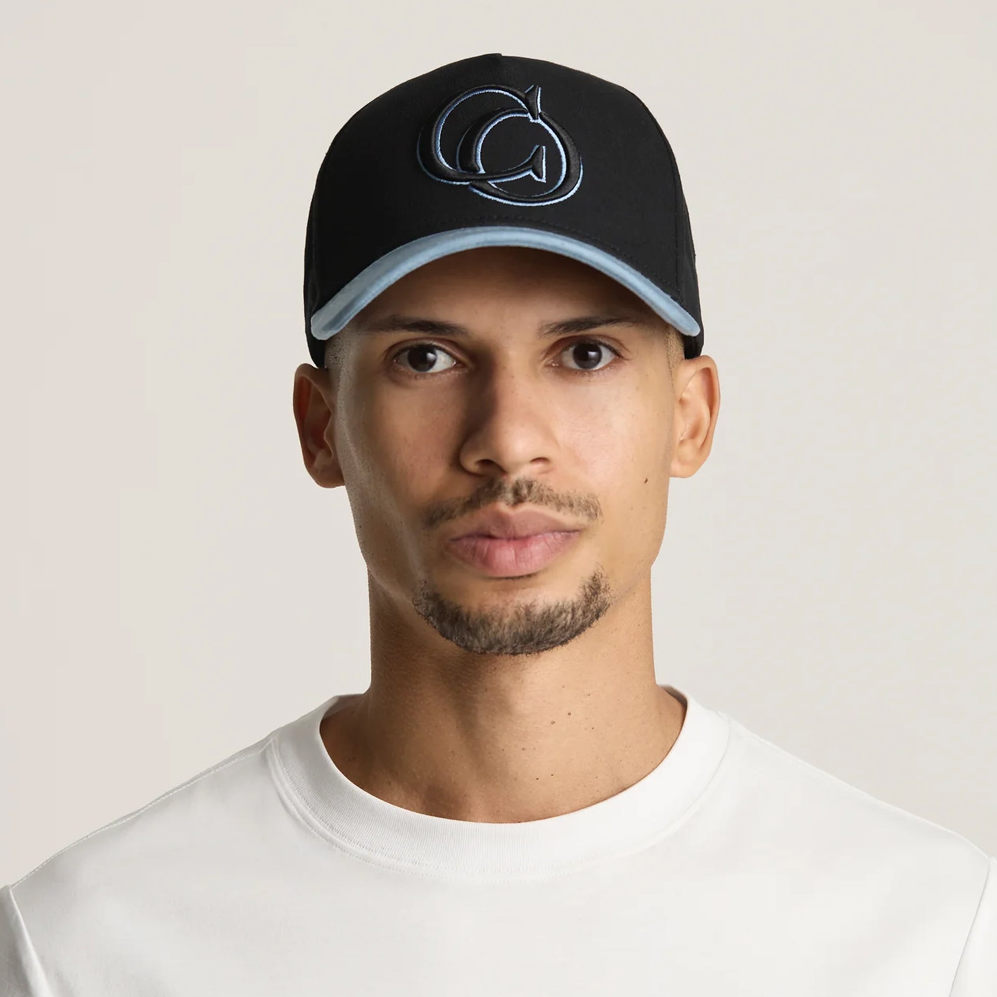 Lunare is Cordori’s elevated two‑tone cap, crafted from premium black cotton with a contrasting blue suede brim. Featuring the brand’s tonal CO emblem on the front and an embroidered emblem on the back, it blends everyday versatility with refined design.