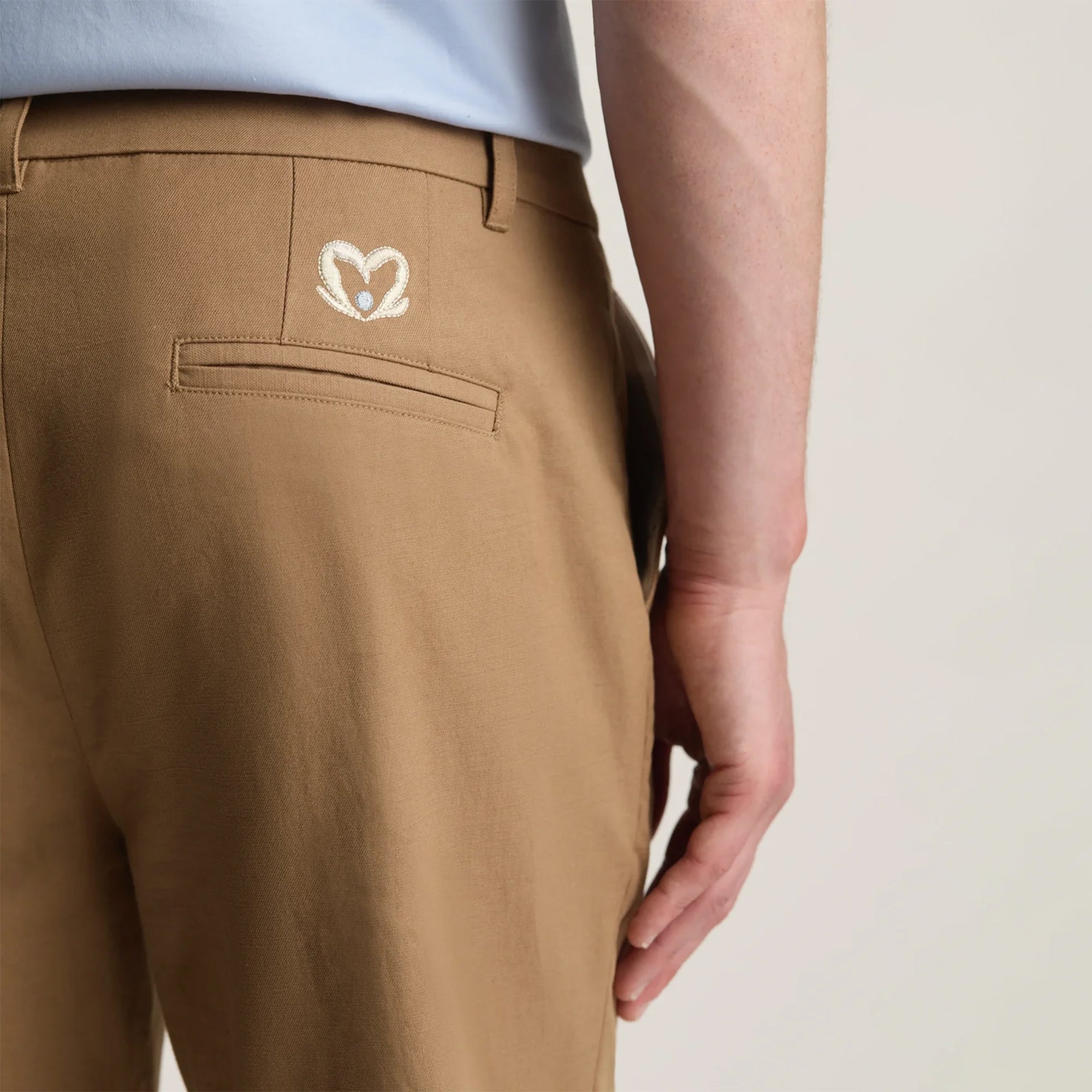TRAIL is Cordori’s elevated interpretation of the luxury men’s tailored chino, crafted from a premium cotton‑linen blend. With a clean straight‑leg cut, contrast inner taping, and botanical‑printed pocket lining, TRAIL merges refined craftsmanship with practical ease.