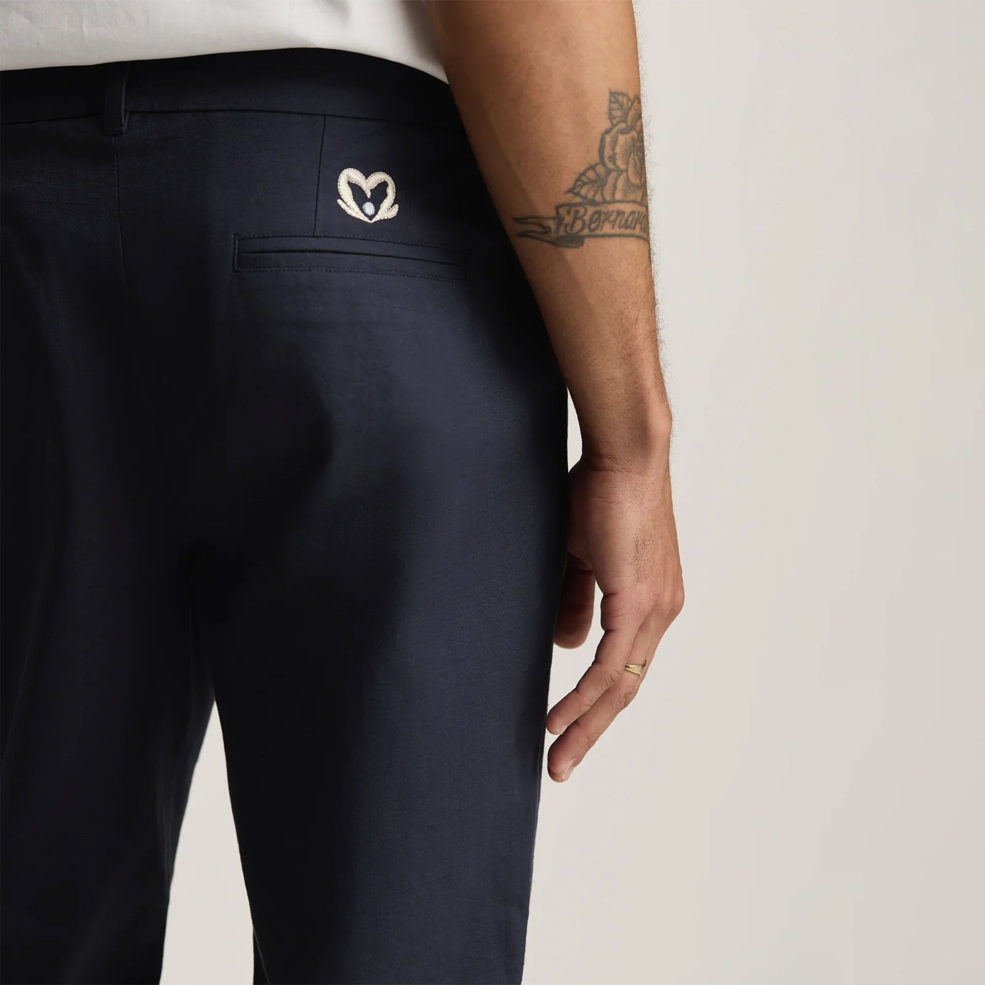 Designed to move effortlessly through workdays, weekends, and journeys alike, it’s a chino that balances timeless style with considered detail.
