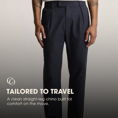 Designed to move effortlessly through workdays, weekends, and journeys alike, it’s a chino that balances timeless style with considered detail.
