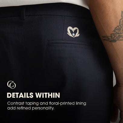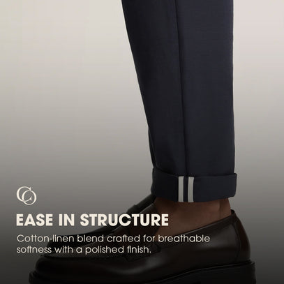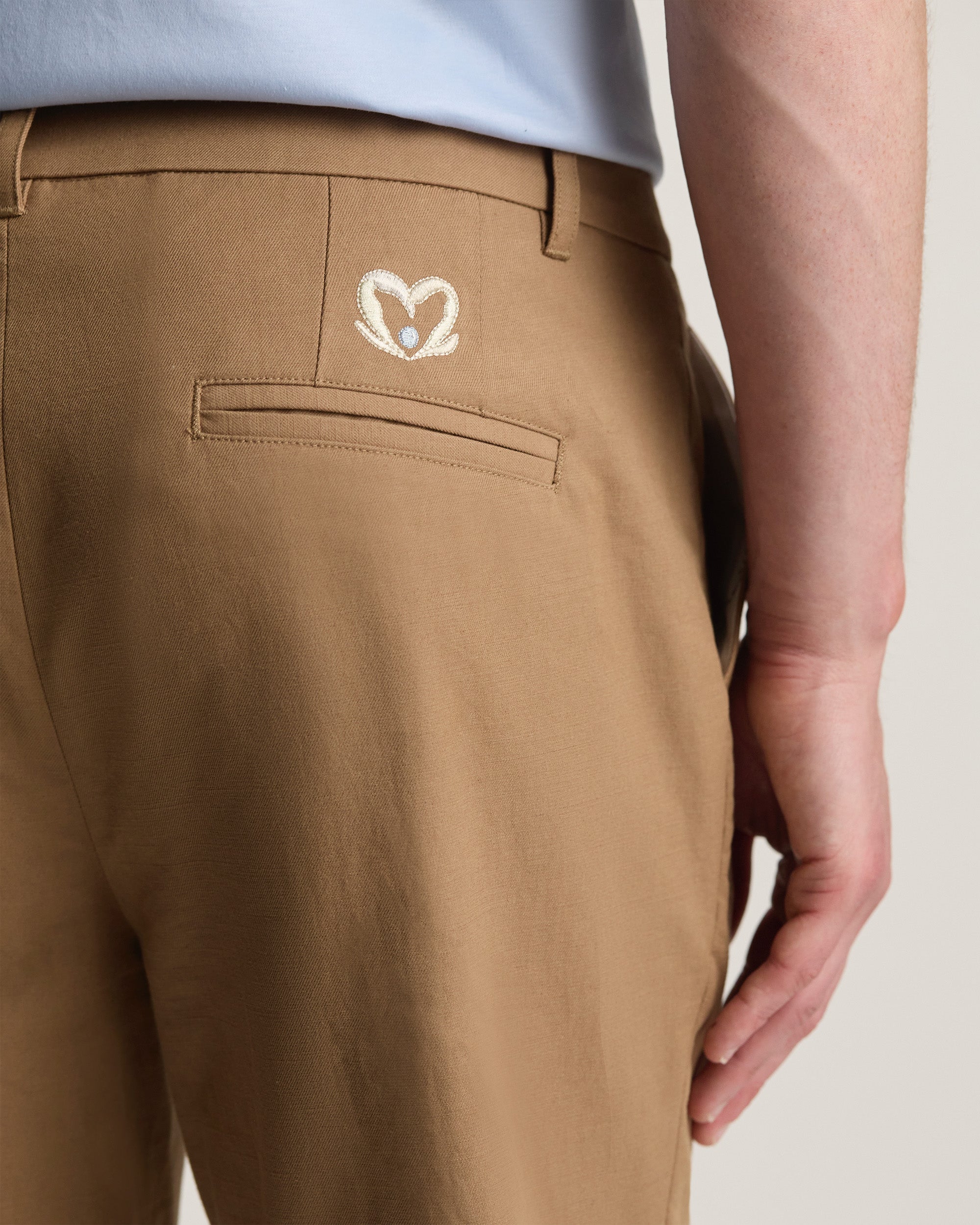 TRAIL is Cordori’s elevated interpretation of the luxury men’s tailored chino, crafted from a premium cotton‑linen blend. With a clean straight‑leg cut, contrast inner taping, and botanical‑printed pocket lining, TRAIL merges refined craftsmanship with practical ease.